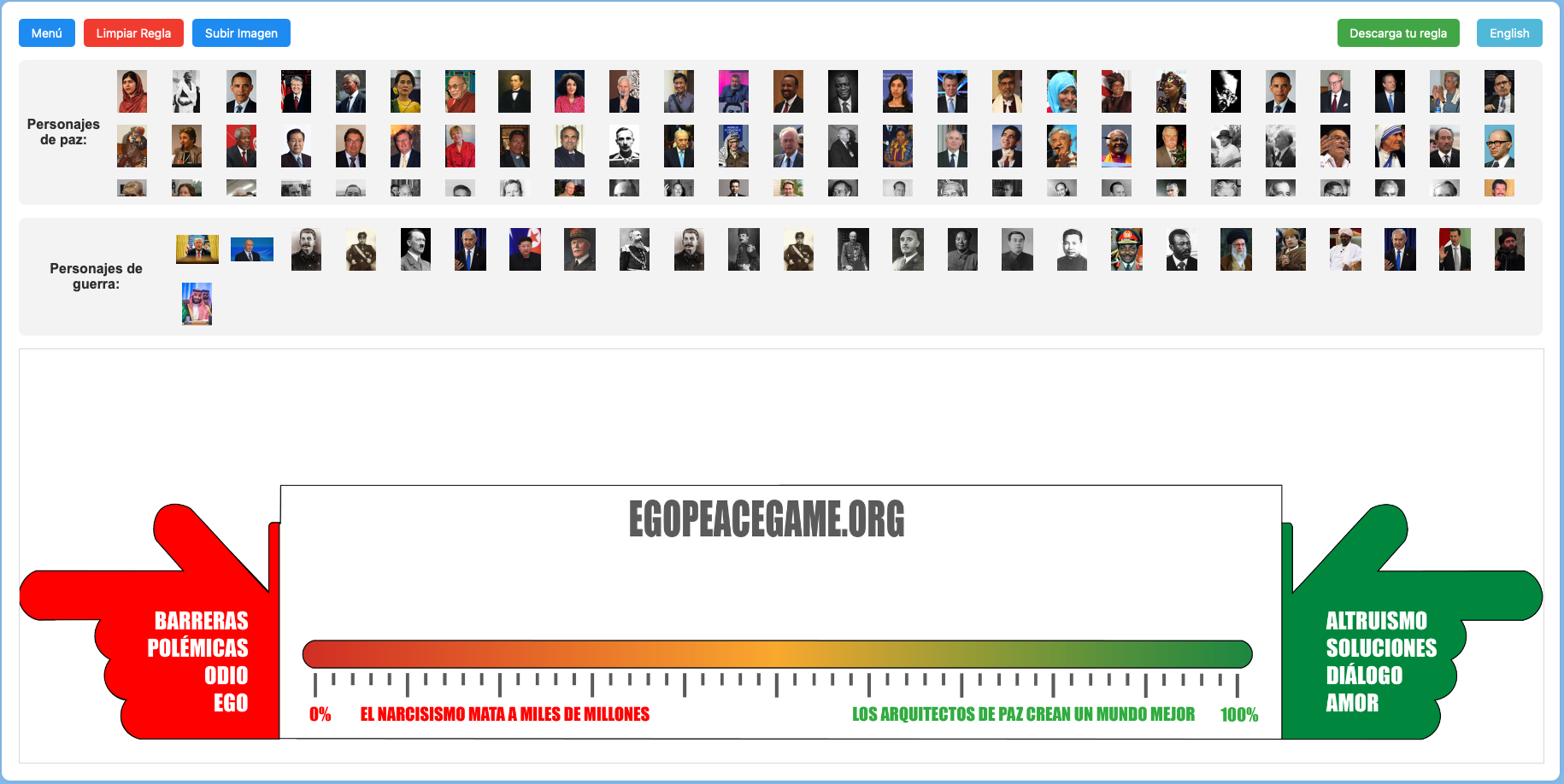 Un juego didáctico para diferenciar a quienes destruyen de quienes construyen. Aprende historia, gestiona el ego y diseña tu propia regla de paz.
